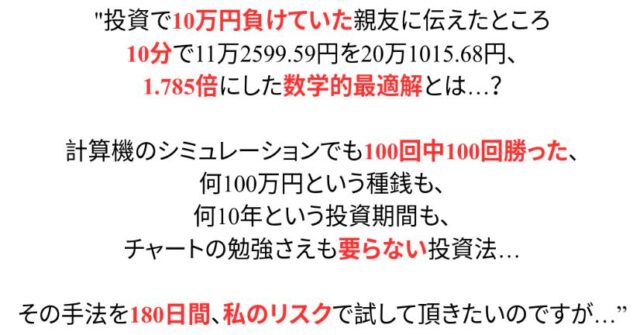 「サポート期間が短すぎる」と思うかもしれませんが、数学的投資法の計算方法をマスターするためには3日間もあれば十分です。