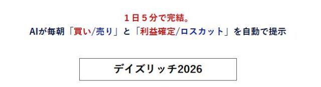 日中取引の寄付時間の前までにデイズリッチ2026を立ち上げて、表示されたサインに従ってエントリーーします。